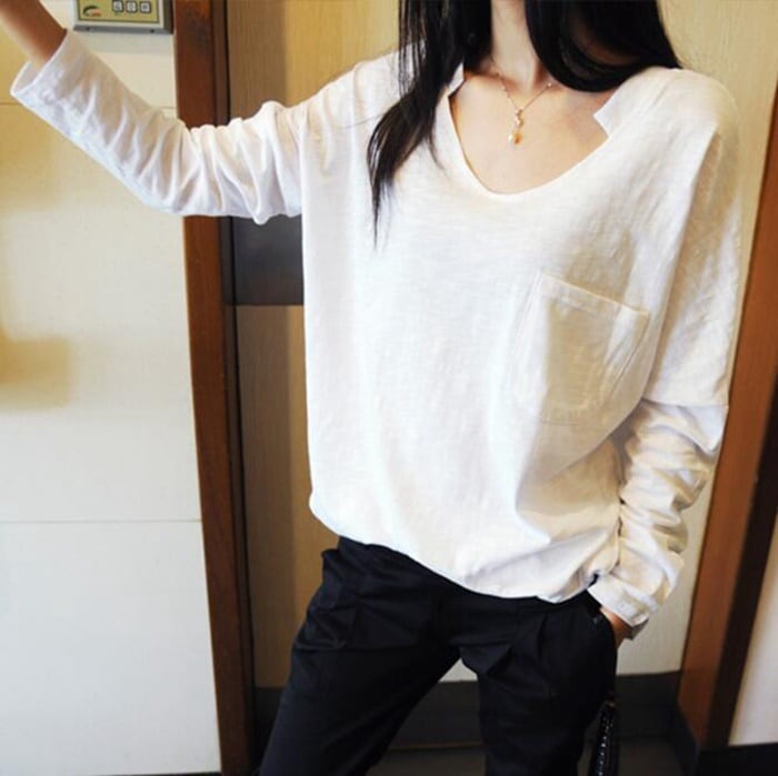 コーディネート自由自在!何枚でも欲しくなる新定番シンプルVネックロンTです。