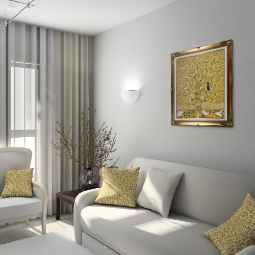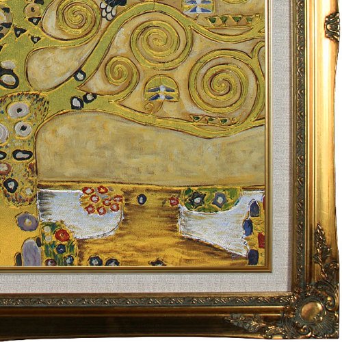20" X 24" Oil Painting On Canvas This painting is part of our "Luxury Line". It is made of the same hand painted oils on canvas, with the addition of beautifully hand embellished gold and silver accents. Exclusive only to our highest quality reproductions. Created in 1909 by artist Gustav Klimt, Tree of Life has been recreated to almost exact detail of the original. Artistic swirls, colors and lots of allegory give this painting many levels of meaning. Klimt, born in 1862 in Austria, was one of the most controversial painters of the early 20th century. He attended the Vienna School of Arts and Crafts where he studied to become an architectural painter. Klimt ended up becoming famous for his paintings that used romance, sex and women as its subject matter. These often garnered controversy from critics. His "golden phase," where he used gold leaf in his paintings produced some of his most famous works, including The Kiss and Portrait of Adele Bloch-Bauer . His paintings can be easily recognized by their use of color and use of spirals and swirls. Enjoy the versatility of the Tree of Life painting when it hangs in your home or office. Gustav Klimt (1862-1918) was one of the most innovative and controversial artists of the early twentieth century. Influenced by European avant-garde movements represented in the annual Secession exhibitions, Klimt's mature style combines richly decorative surface patterning with complex symbolism and allegory, often with overtly erotic content. This work of art has the same emotions and beauty as the original. Why not grace your home with this reproduced masterpiece? It is sure to bring many admirers! Frame Description: Legacy Gold Frame - Gold Finish.