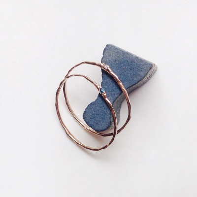 얇은 와이어 표면에 헤머링이 터치된 다이아몬드 실반지입니다.