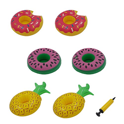 -. Title : Vaburs 6 Pcs Inflatable Drink Holder Float with Mini Air Pump for Pool Party Water Fun,2 Watermelon,2 Donuts and 2 Pineapple