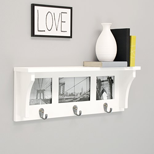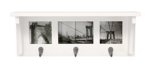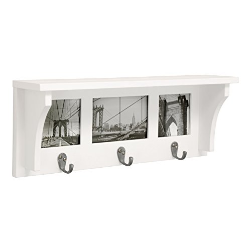 Kiera Grace Riley Wall Shelf and Picture Collage with 3 Hooks, 18.5-Inch by 7-Inch, Holds 2- 4 by 4-Inch and 1- 4 by 6-Inch Photo, White
