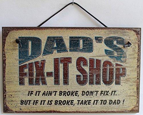 5x8 Fix-It Shop Sign Saying "DAD'S FIX-IT SHOP If it ain't broke, don't fix it. But if it is broke, take it to DAD!" Decorative Fun Universal Household Signs from Egbert's Treasures
