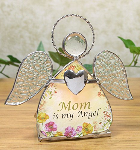 Mom Glass Angel Stained Glass Tealight Candle Holder - Mother is My Angel - Birthday Gifts for Mom - Stained Glass Angel