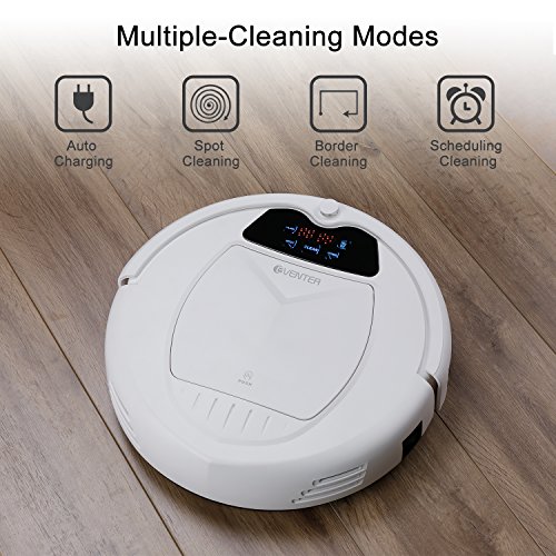 Eventer Robotic Vacuum Home and Kitchen Cleaning Robot, Self-charging Scrubbing, Anti-allergy From Dust Pet Hair with Tangle-free Suction for Hard Floor-White