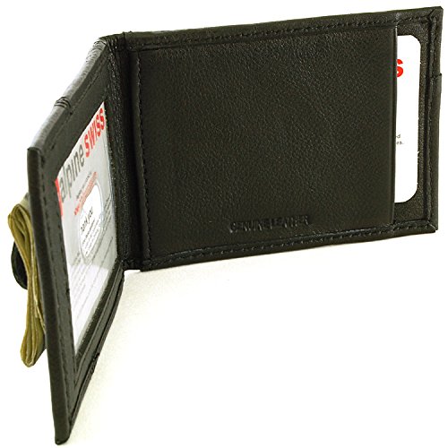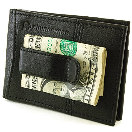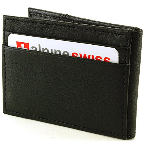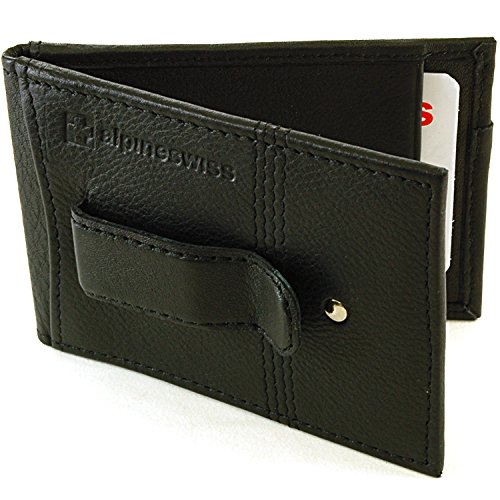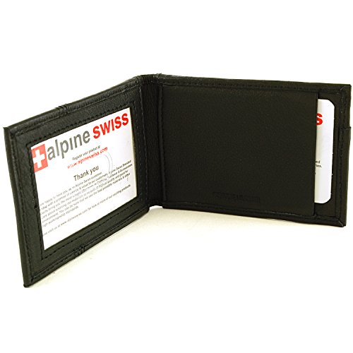 Alpine Swiss Men's Genuine Leather Flip-Fold Money Clip Front Pocket Wallet Black