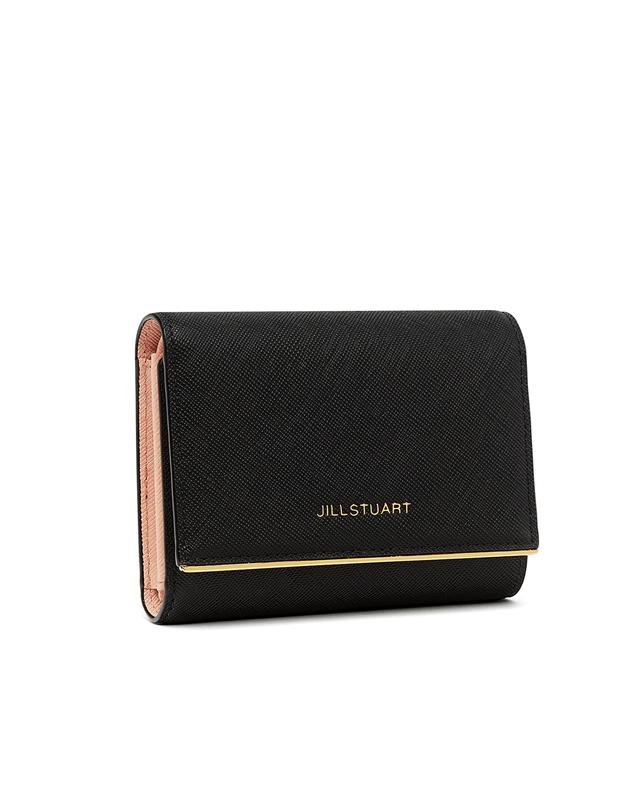 골드 바와 로고 장식으로 포인트를 주었으며 내부 배색으로 세련된 외관을 연출한 반지갑입니다.