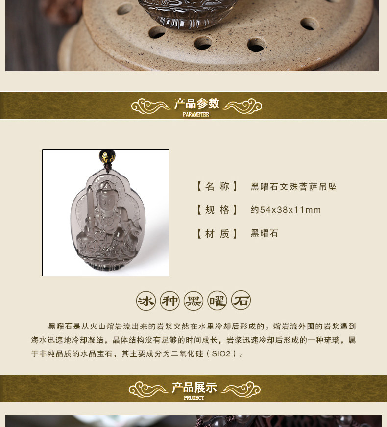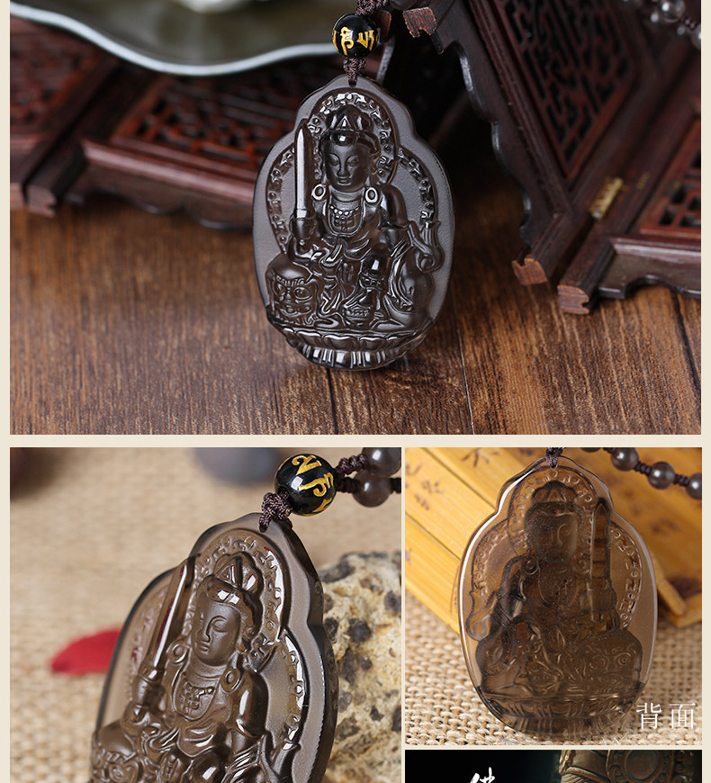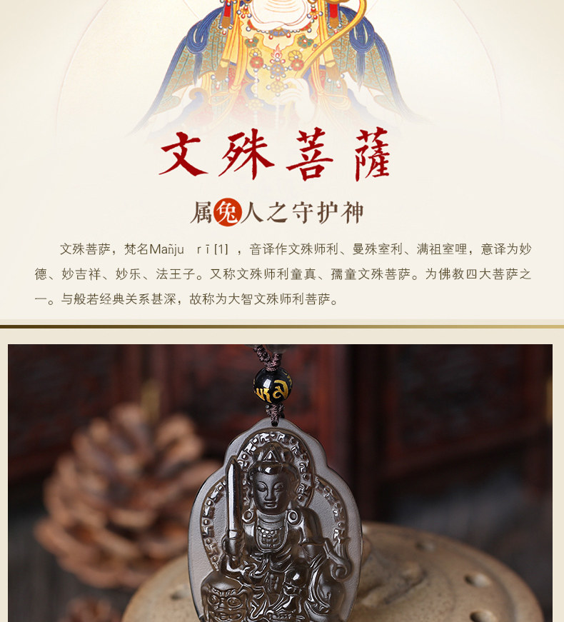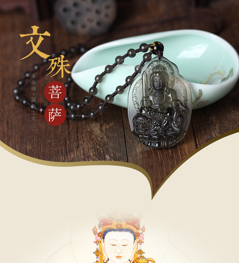 冰种黑曜石文殊菩萨十二生肖兔本命佛守护神吊坠