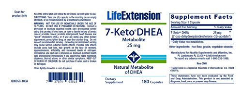 ReleaseDate : 2017-10-27 Studio : Chiropractors Buying Group Publisher : Chiropractors Buying Group Binding : Health and Beauty Product Description Life Extension 7-Keto DHEA 25 Mg 180 Capsules is the brand name for a natural metabolite of DHEA, your body's most abundant circulating hormone. 7-Keto DHEA has been shown to safely promote thermogenesis, the process of producing cellular energy in the form of heat. 0