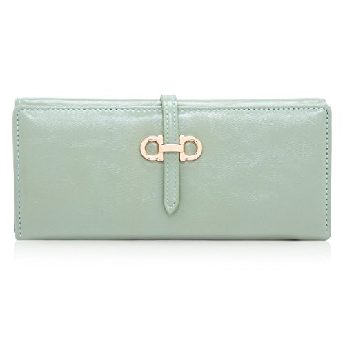 Damara Women Patent Leather Chic Buckle Bifold Practical Wallet Clutch Bag,Light Purple
