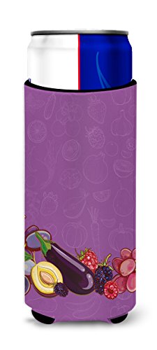 Caroline's Treasures Fruits & Vegetables In Purple Michelob Ultra Hugger For Slim Cans, Slim Can, Multicolor