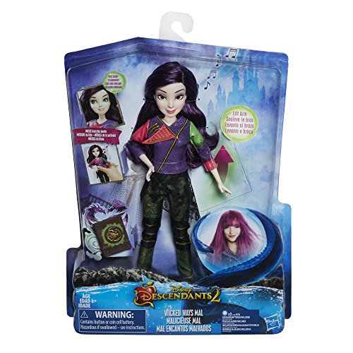 -. Feature : Doll sings "Ways to be Wicked" / Doll's eyes glow green / Inspired by Mal Isle of the Lost in Descendants 2 / Includes doll, outfit, book, instructions, and pair of shoes.
