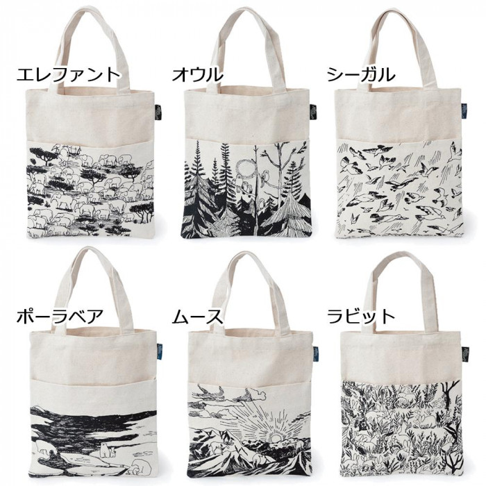 自然に暮らす動物たちのイラストのトートバッグ。
