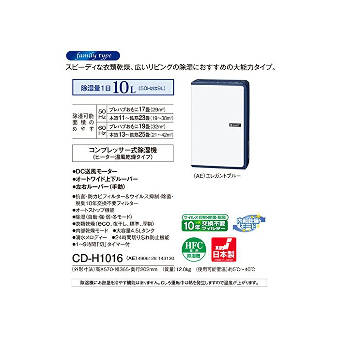 원본상품명: コロナ 衣類乾燥除?機 除?量10L(木造11??筋23?まで) エレガントブル? CD-H1016(AE)