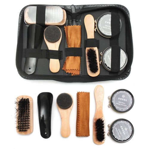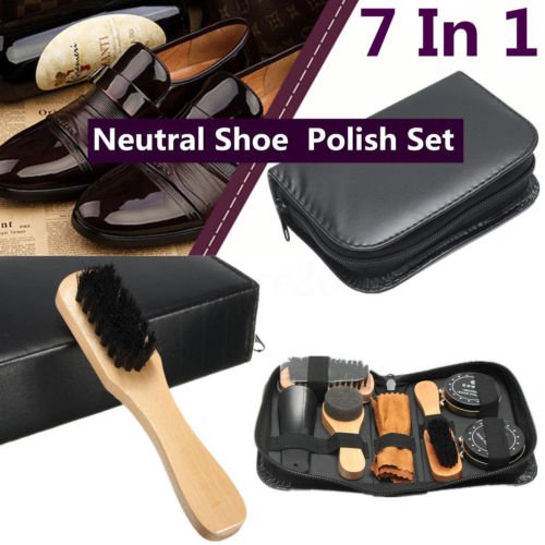 Product Description Items Description An Easy-to-carry Shoe Polish Set great for business travels, take with you wherever you go to maintain that professional look Features: Shoe Polish Color: Black Neutral Case Material: Leather Case Size (Approx.): 18 x 11 x 5cm Capacity: 20ml/box Package Included: 1 x Neutral Shoe Polish 1 x Black Shoe Polish 1 x Polishing Cloth 1 x Plastic Shoe Horn 1 x Wood Handle Shoe Sponge 2 x Wood Handle Shoe Brushes 1 x Zipped Case