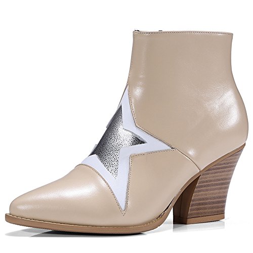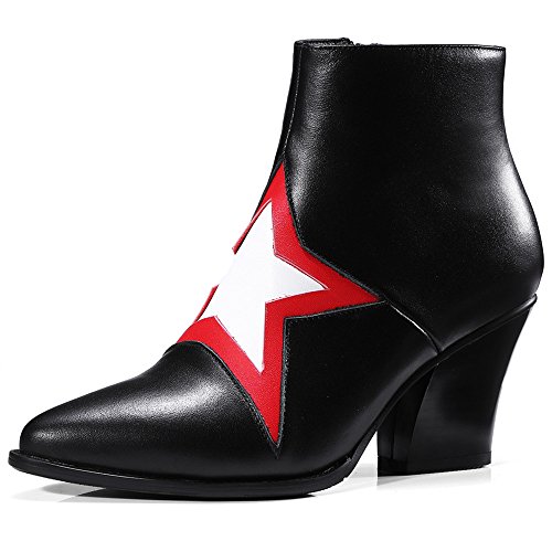 (Nine Seven)/Women's/Boots/DIRECT FROM USA/Nine Seven Genuine Leather Women's Pointed Toe Stacked Heel Stars Handmade Fashion Trendy Ankle...
