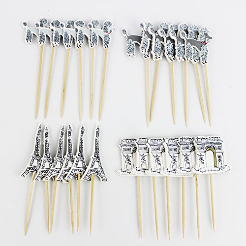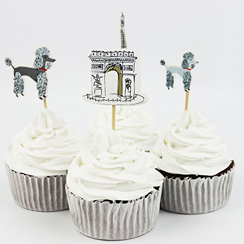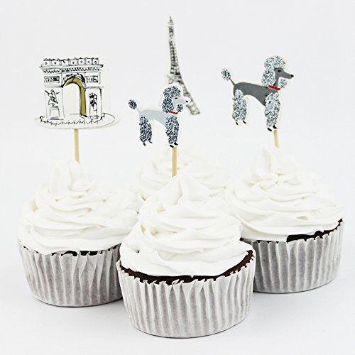 Winrase® Pack of 24 Cute Eiffel Tower and pet dog Kids Party Decoration Paper Cupcake Toppers (Eiffel Tower and pet dog)