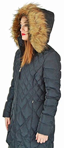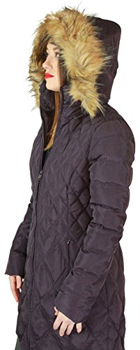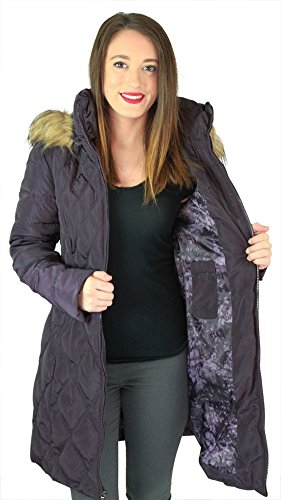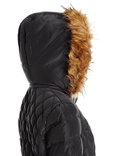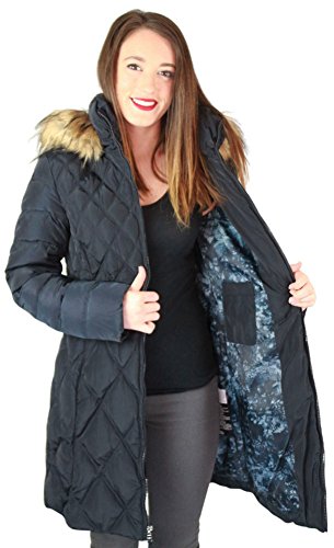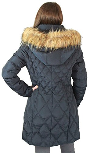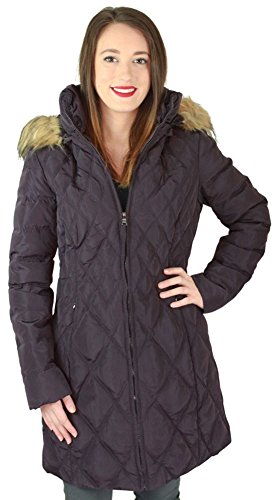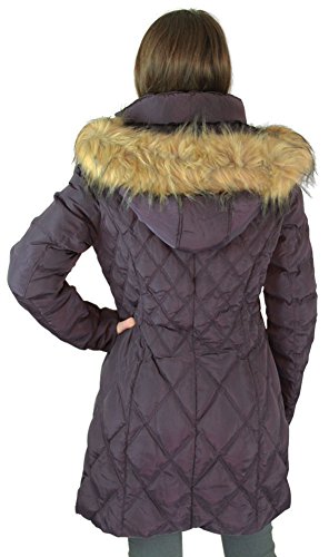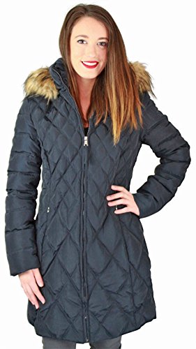 Jessica Simpson Women's Mid-Length Diamond-Quilted Down Coat with Faux-Fur Trim