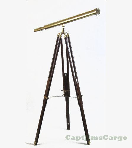 Studio : Handcrafted Model Ships Publisher : Handcrafted Model Ships Binding : Toy Product Description This large nautical solid brass telescope has a scope length of 38" and the wooden tripod stand can extend up to 60" tall. The magnification of this functional refractor telescope is 32x. The lens cover is made of brass and will not be lost as it is attached with a brass chain. Nothing stands out better as you enter a room than a nautical antique polished brass telescope and this Harbor Master Telescope is sure to become a very conversational addition to your nautical home decor. This Harbormaster brass metal refractor telescope would make the perfect nautical gift and educational kids telescope. 0