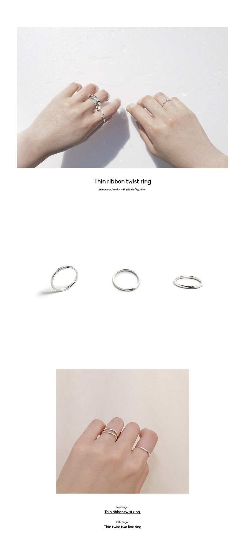 기존 리본링과 같은 방식으로 리본 꼬임을 넣어 아주 얇게 제작된 반지입니다.