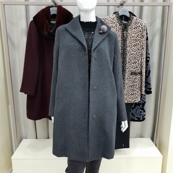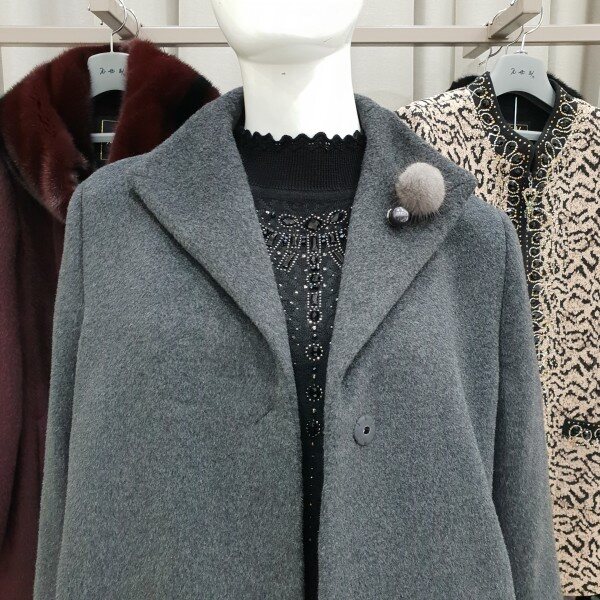 탈착가능한 폼폼브로치포인트 알파카코트군더더기없이 일자로떨어지는 심플한 디자인