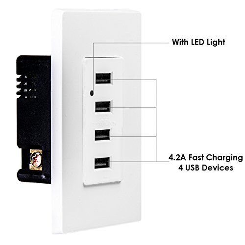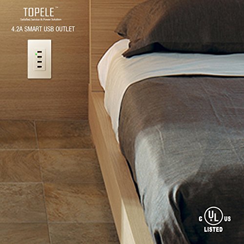TOPELE LD-U002 4.2A Smart High Speed USB Charger Outlet,4 USB Ports with 2 Wall Plates • High speed charger, Smart-Intelligent identification chip, automatic identify the charging current that the device required.