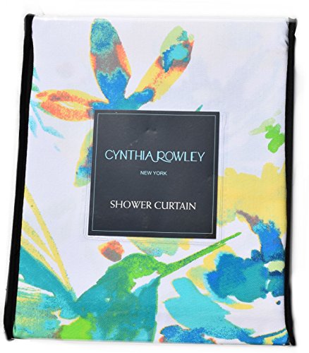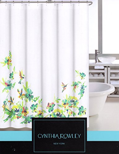 Cynthia Rowley Vintage Watercolor Cotton Fabric Shower Floral Hummingbird Print French Country 72 by 72 inch Multicolored (Turquoise)