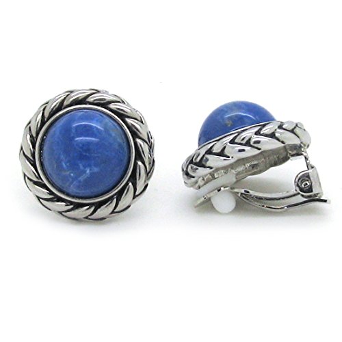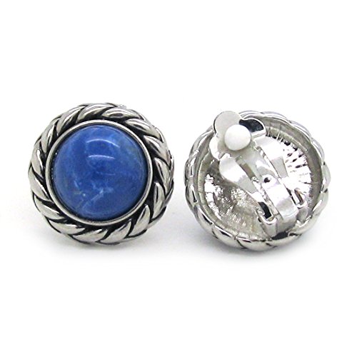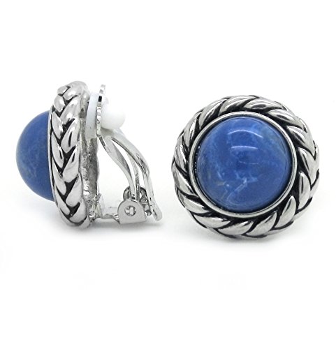 These clip on earrings are made of rhodium plated base metal with antique finish. Featuring elegant braided design and accented with deep blue resin. Perfect for casual day or fancy party wear. For non-pierced ears. Just clip and you are ready to go. These fashion clip on earrings will make the perfect choice for your special someone for Valentine's gift, Christmas gift, Mothers day gift, Birthday gift, Anniversary Gift, or Bridal party gifts.Feature