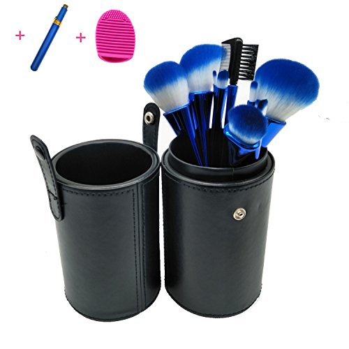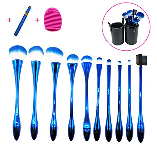 Xuaber 10pcs Makeup Brush Set Professional Goblet Makeup Brushes Cosmetic Kabuki Brushes Tool Set with Powder Puff Brush Cleaner (Blue)