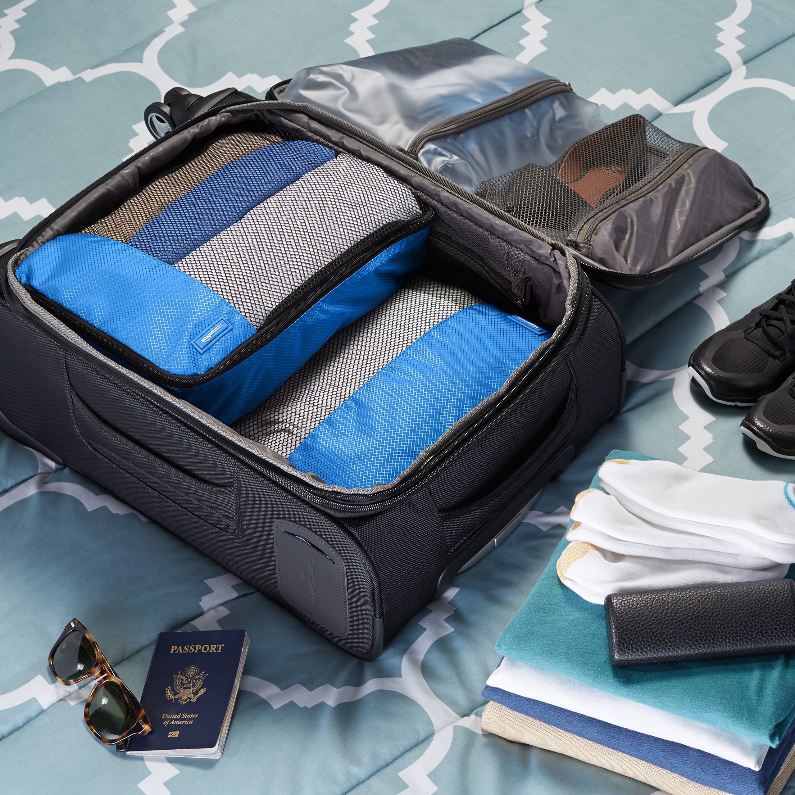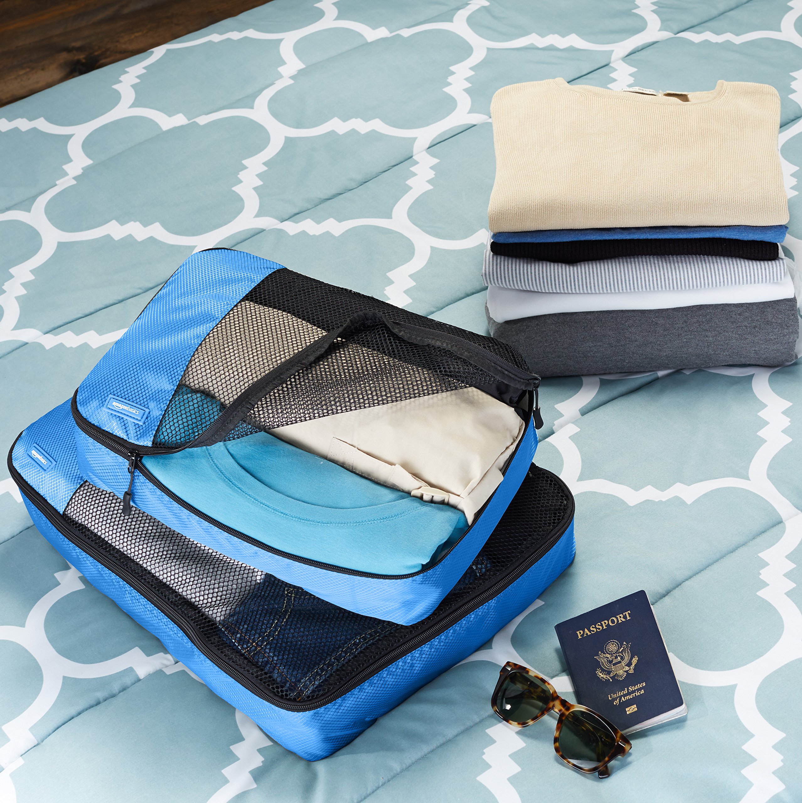 Amazon Basic Traveling Storage Case 4 Pieces Set - L Size x 2 M Size x 2 Blue