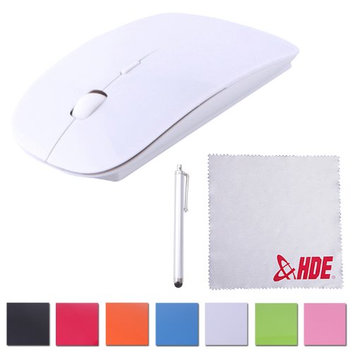 HDE Sleek Flat 2.4 GHz Wireless Slim Ergonomic Optical Mouse with DPI Switch and Stylus (White)