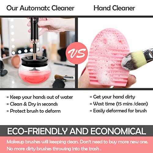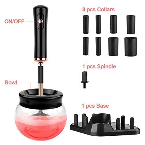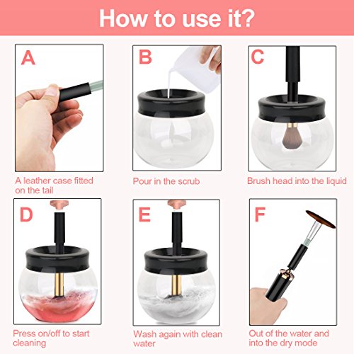 - ⭐Automatic & Easy to use: Different from the traditional cosmetic brush cleaner, our upgraded makeup brush cleaner is totally electric and automatic.Attach a brush, dip its bristles into the solution, spin to wash and spin to dry.