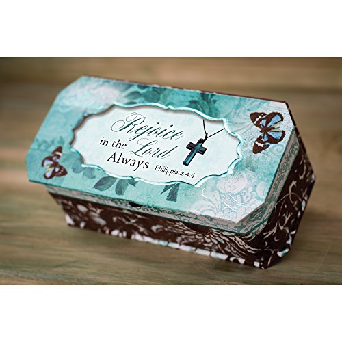 Rejoice in the Lord Always Aqua Blue Butterfly Jewelry Music Box Plays We Have a Friend in Jesus