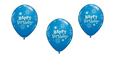 -. Feature : (1) 38 inch Holographic Linky Snowflake Foil Balloon / (2) 18 inch Jr Shape Let It Snow foil balloons / (3) 11 inch Clear latex balloons with White Snowflake P.R.Int balloons / (3) 11 inch Blue Latex Sparkle Happy Birthday P.R.Int balloons / (3) 11 inch Pale Blue balloons