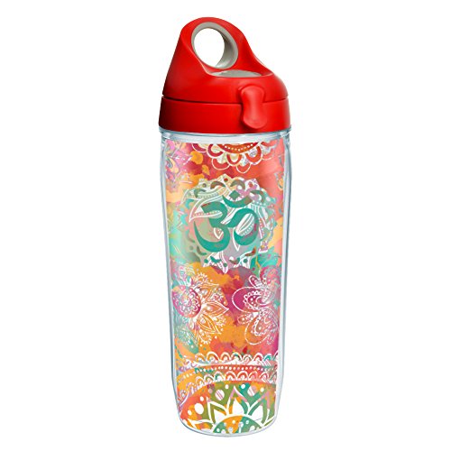 Tervis 1204542 Yoga Om Pattern Wrap Water Bottle with Red Water Bath Lid, 24 oz, Clear