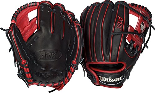 Studio : Wilson Publisher : Wilson Binding : Misc. Product Description Pro-Level Performance for the Up-And-Coming Player - the Wilson A1K is BACK! The Wilson A1K takes the same legendary A2000 and A2K patterns designed for the game's Elite and tweaks them slightly to meet the needs of Intermediate to Advanced-level players everywhere. Built from Top-Shelf Leather, the A1K Series provides pro-level performance without the need for a lengthy break-in. This high-end steer hide leather is the best quality available on the open market, and it blends a high level of durability with a softer, mold-able feel that allows you to form the glove to your exact preference. Each glove in the A1K Series also features the Pedroia Fit. This feature includes all of the fit modifications that Dustin Pedroia requests for his own game-model glove. These include a smaller hand opening and tighter finger stalls for a more-snug fit, longer laces, and a low profile heel. By removing the padding typically found at the base of the pocket or "heel", Wilson is able to create a design that closes easier and minimizes the rebound created when bad-hops hit the base of the glove. This model features an 11.50" pattern size, an I-Web (Wilson H-Web) with Double X Laces, and is perfect for a Youth to Intermediate Infielder. 0