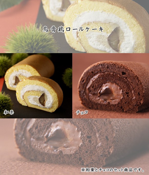 | 和栗は見事な焼き上がりのキメ細やかなスポンジに優しく包まれたたっぷりの北海道産純生クリームと和栗との相性が抜群です。チョコは大人気の烏骨鶏ロールケーキに高級ベルギー産チョコレートを惜しげもなく投入し、中心に生チョコを丸ごと一本巻き込んだほろ苦い大人のロールケーキです。ひとくち食べた瞬間にふわふわのスポンジの食感とチョコの苦さが更なる食欲をかきたてます。 |