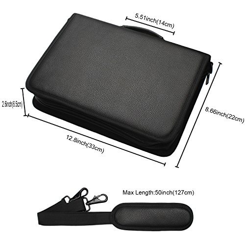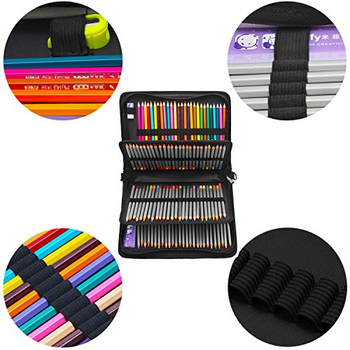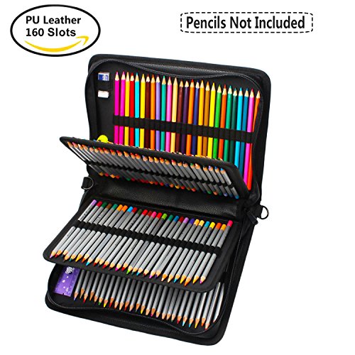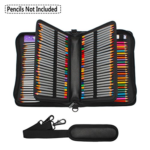 NIUTOP 160 Slots Pencil Case PU Leather Large Capacity Zipper Pen Bag with Adjustable Strap for Colored Pencil Watercolor Pencils Marco Pens and Cosmetic Brush (Black)