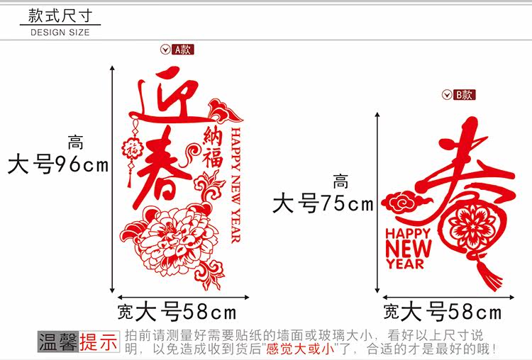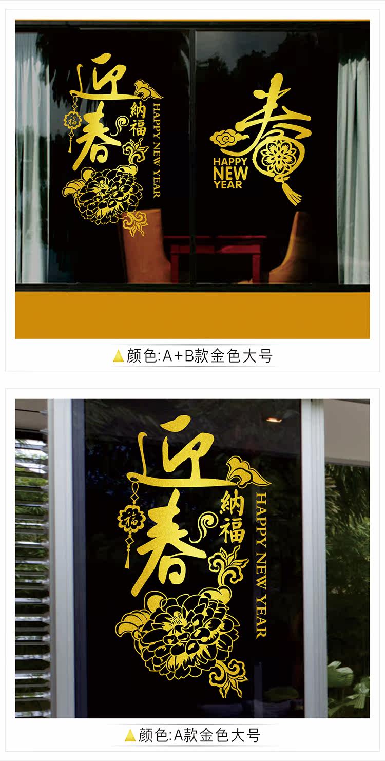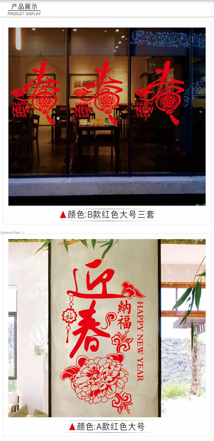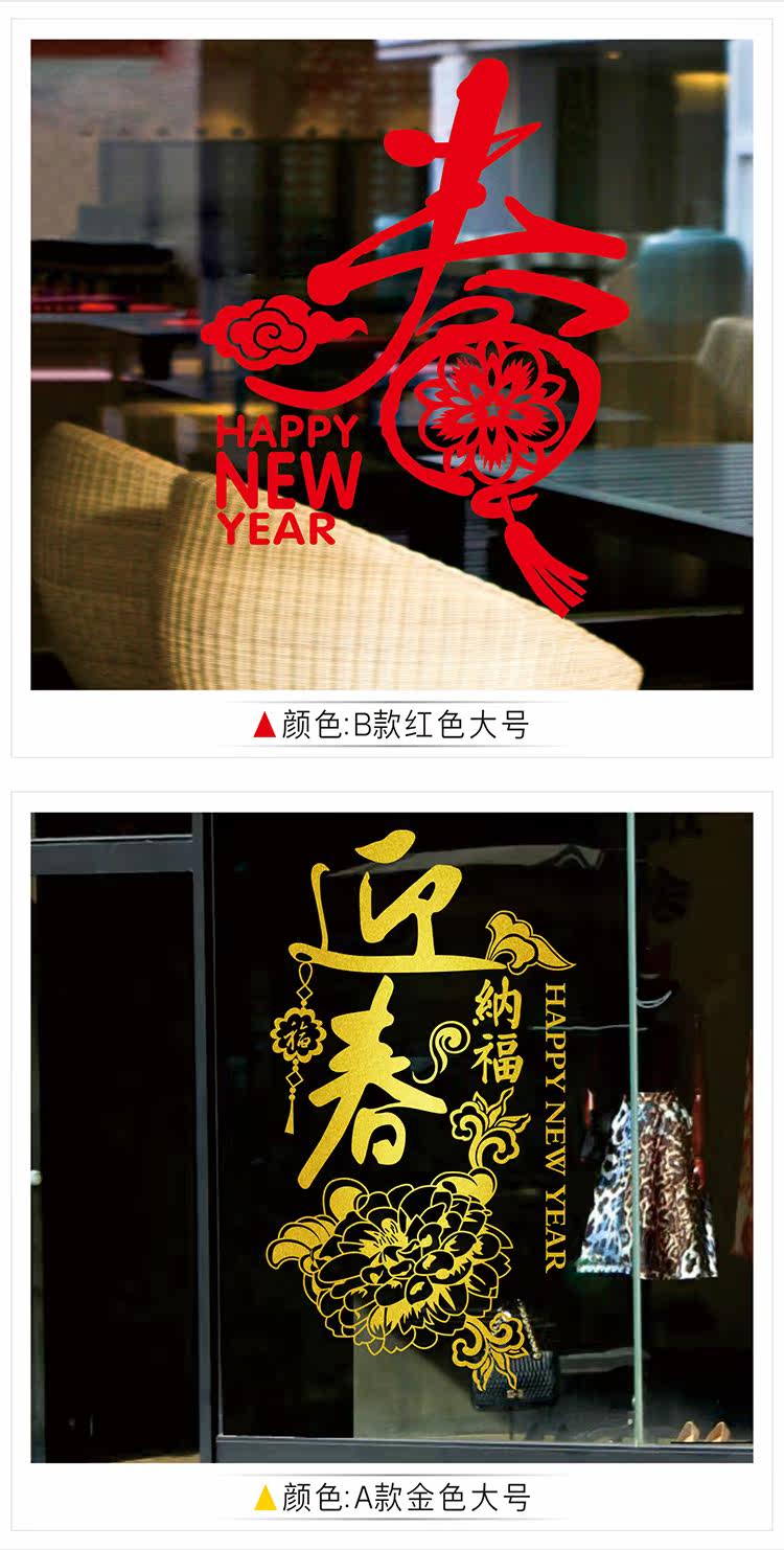 新年过年新春装饰品贴纸春节玻璃橱窗门贴元旦场景布置创意墙贴画