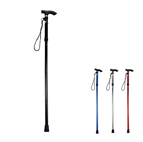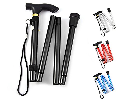 Studio : Heth Publisher : Heth Binding : Health and Beauty Product Description Features: - Height can be adjusted from 32 to 37 inches. - Four folding sections snap out automatically. - Comfortable contour grip with rubber tip, plastic handle with removable hand strap and brass collar. - Non-slip rubber base has increased wear-resistance. - Steady and rigid design, durable Aluminum construction. Material: Aluminum Alloy Color: Black, Silver, Blue, Red Best Use: Mountaineering, Hiking, Backpacking Package weight: 0.291 kg Package Dimension: 33 x 18 x 7 cm / 12.97 x 7.07 x 2.75 inches Package Contents: 1 x Folding Walking Stick Cane