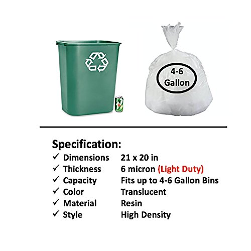 MEASUREMENT: L x W = 21 inches x 20 inches. Fits up to 6 Gallons Trash Cans. Bags are THIN and are perfect for office, restroom, hotels and LIGHT DUTY trash use
