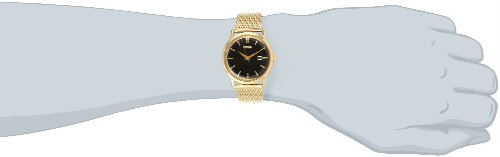 - Feature : Gold-tone dress watch with mesh band featuring black dial with baton hour markers and date window at three o' clock / Japanese-quartz movement with analog display / Mineral crystal dial window / Features push-and-slide-clasp closure / Water resistant to 99 feet (30 M): withstands rain and splashes of water, but not showering or submersion / Eco-drive is fueled by light so it never needs a battery / Gold tone stainless steel bracelet with black dial / 3 hand basic / Mineral crystal / Water resistant to 99 feet (30 M): withstands rain and splashes of water, but not showering or submersion