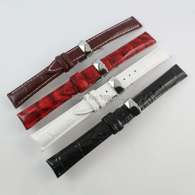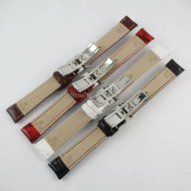| [해외]15 미리메터 M7600의 높은 품질 실버 나비 버클 + 블랙 화이트 레드 브라운 페인트 정품 가죽 시계 밴드 스트랩 |