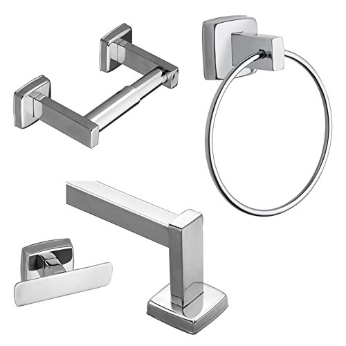 - Kit includes double robe hook, toilet paper holder, 24-in towel bar, towel ring