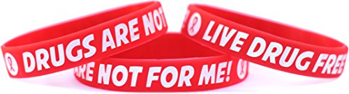 100 Child Size Live Drug Free Wristbands - Drugs Are Not for Me Bracelets - Red Ribbon Week Bands