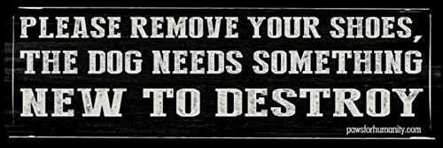 Funny Dog Signs ~ Please Remove Your Shoes, The Dog Needs Something New to Destroy ~ Metal 6 x 16 inches ~ USA Made ~ Dog Lover, Walker, Veterinarian, Groomer, House, Doggie Daycare, Décor & Gifts