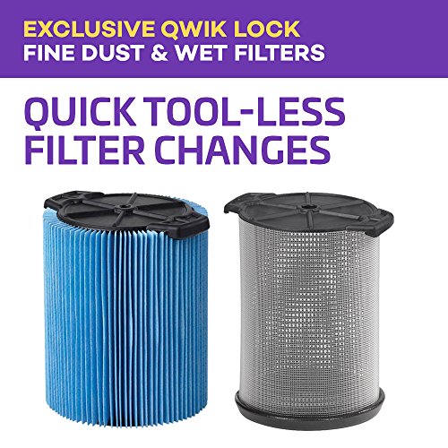 The ProGuard 15 wet dry shop vacuum cleaner includes a 10-foot x 1-1/2-inch dry wet vacuum hose, 2-piece wand, hard floor tool, squeegee tool, crevice tool, and soft dusting dust brush. This wet dry vacuum cleaner features an extra-long, 50-foot 14-gauge power cord to provide plenty of reach. The patented Quick Lock Fine Dust Filter and Wet Filter allow for easy filter removal and replacement.