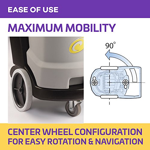 The ProGuard 15 wet and dry vacuum cleaner features a large capacity 15-gallon tank and a powerful, 1380-watt, 9.5-amp motor that produces an airflow of 105 CFM with 95-inch static lift. The convenient cart handle, carry handle and rugged wheels provide unmatched mobility. The variable swivel caster wheel pattern allows 360-degree or stair-ready maneuverability. It takes just 1/3 the effort to turn in the center wheel configuration.