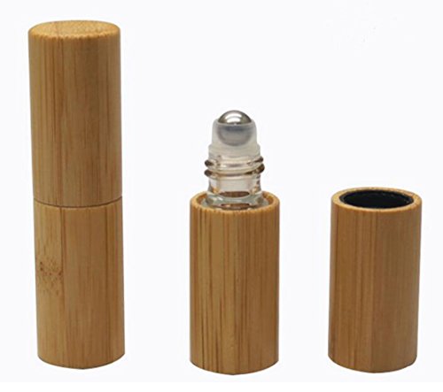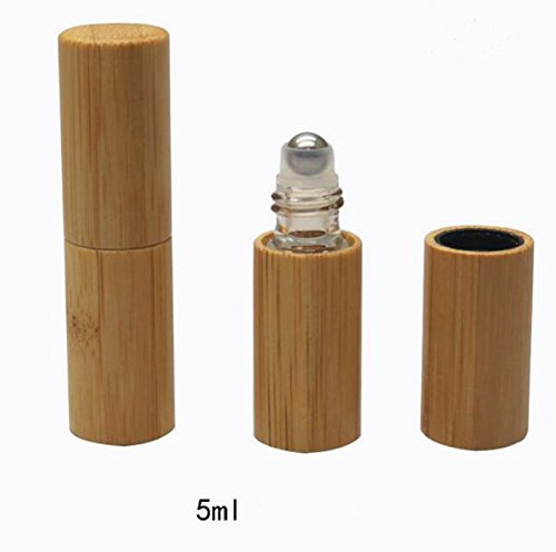 3PCS 5ml Bamboo Glass Empty Roll on Bottles Essential Oil Perfume Roller Bottle With Stainless Steel Ball Walking Beads For Lip Balms Aromatherapy