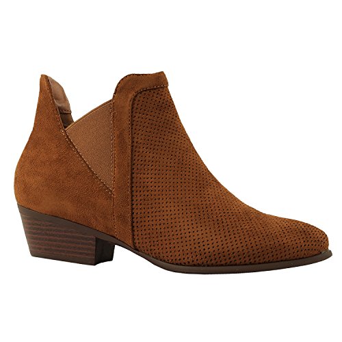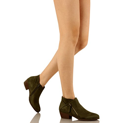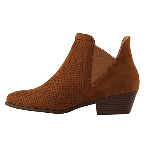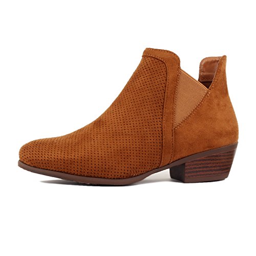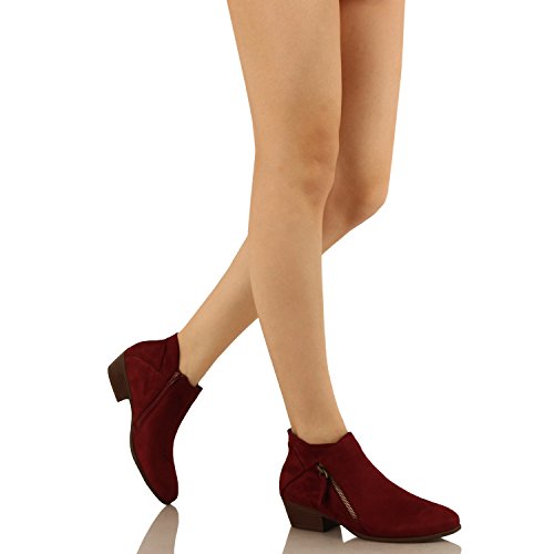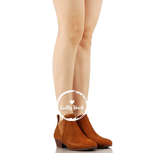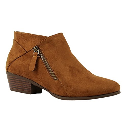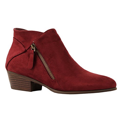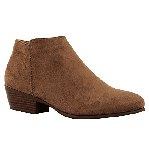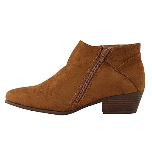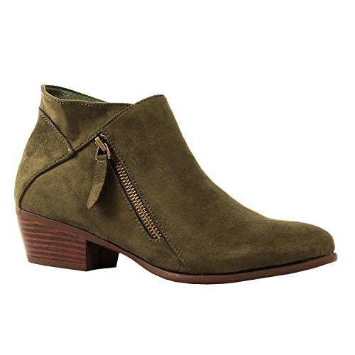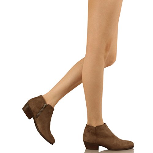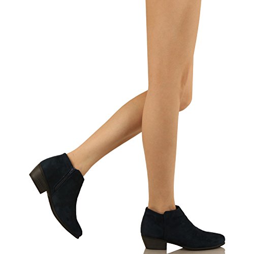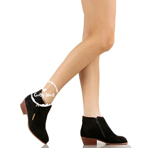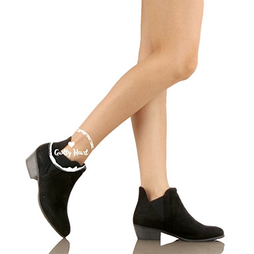 | Guilty Shoes Womens Cowboy Closed Toe Faux Suede Bootie - Comfortable Side Zipper Low Heel Ankl... |