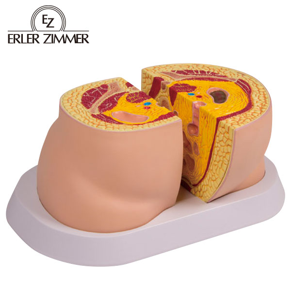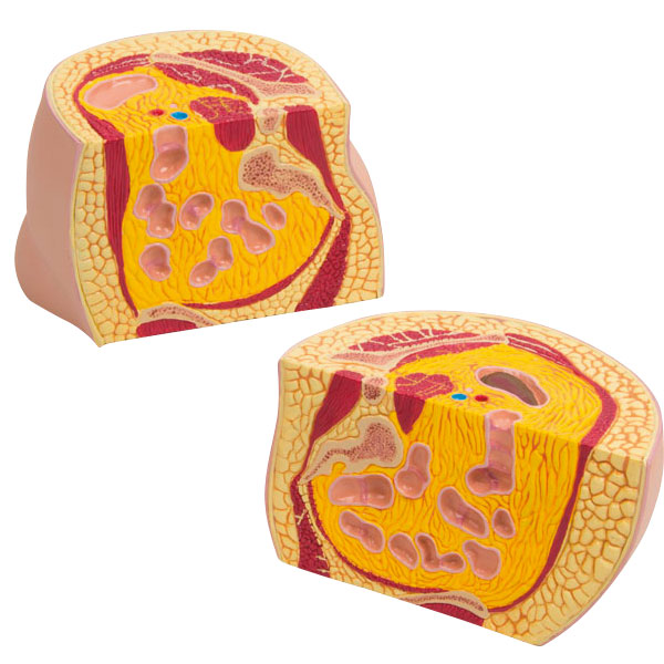 ●下腹部を左右に分け、右「リンゴ型肥満」と左「洋ナシ型肥満」2つの肥満タイプを再現した模型です。